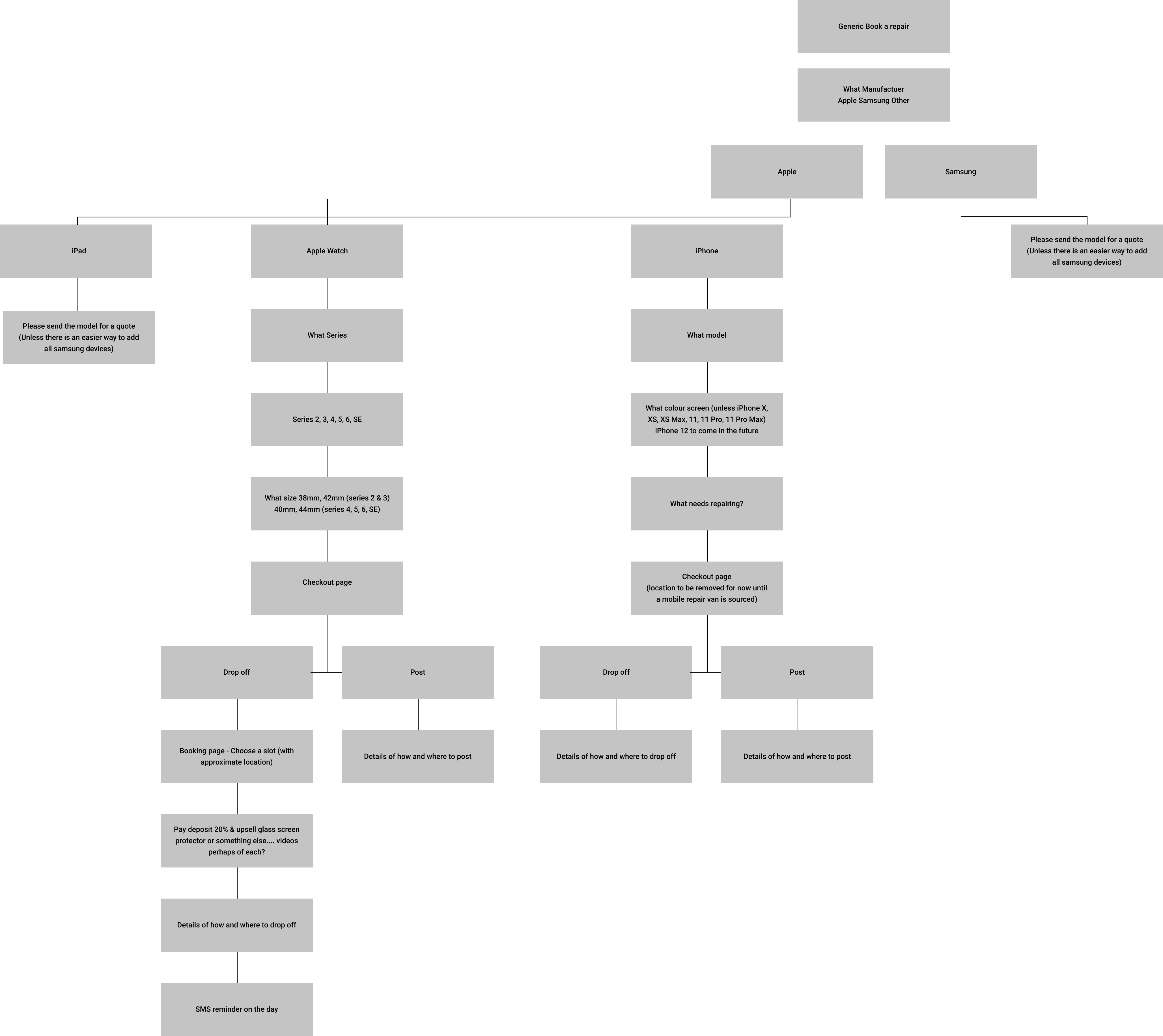 The main goal of the site was to let customers quickly book repairs for iPhones, Apple Watches and iPads. The challenge here was making the process straightforward while still gathering the right details. I had to simplify the steps so that anyone, even less tech-savvy users, could complete a booking easily.
